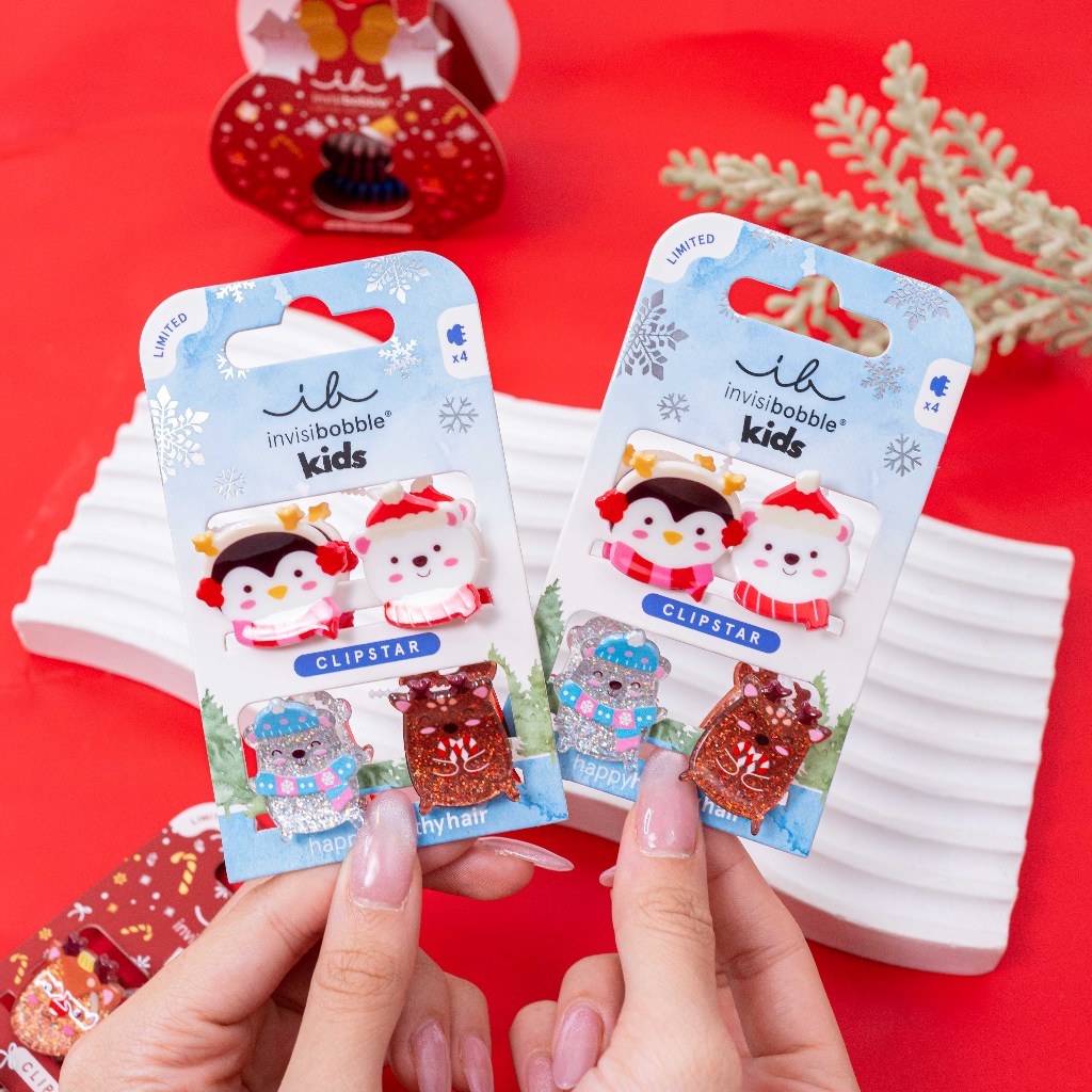 invisibobble กิ๊บหนีบผม กิ๊บติดผม ถนอมเส้นผม รุ่น Clipstar kids HOLIDAY Cozy Snowy - Limited (1 กล่องบรรจุ 4 ชิ้น)