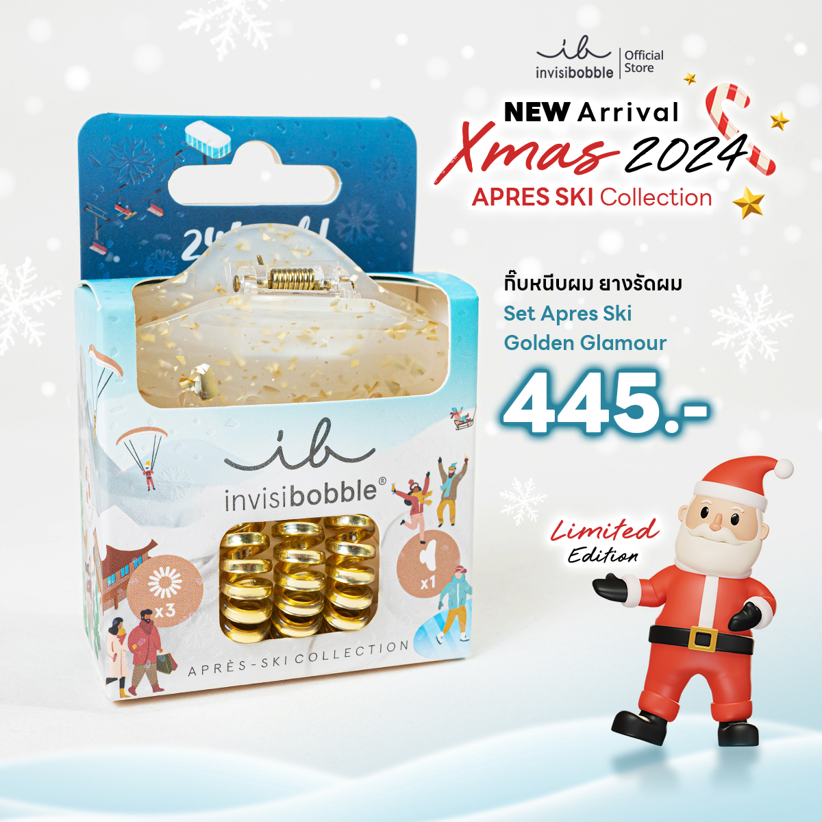 - Set Apres Ski Golden Glamour - Limited ที่เป็นของขวัญสุดพิเศษในฤดูกาลนี้! ชุดนี้มีอุปกรณ์เสริมผมที่ทั้งทันสมัยและหรูหรา จากซีรีส์ "Apres Ski" ที่จะทำให้ลุคของคุณดูมีเสน่ห์เหมือนฤดูหนาว!