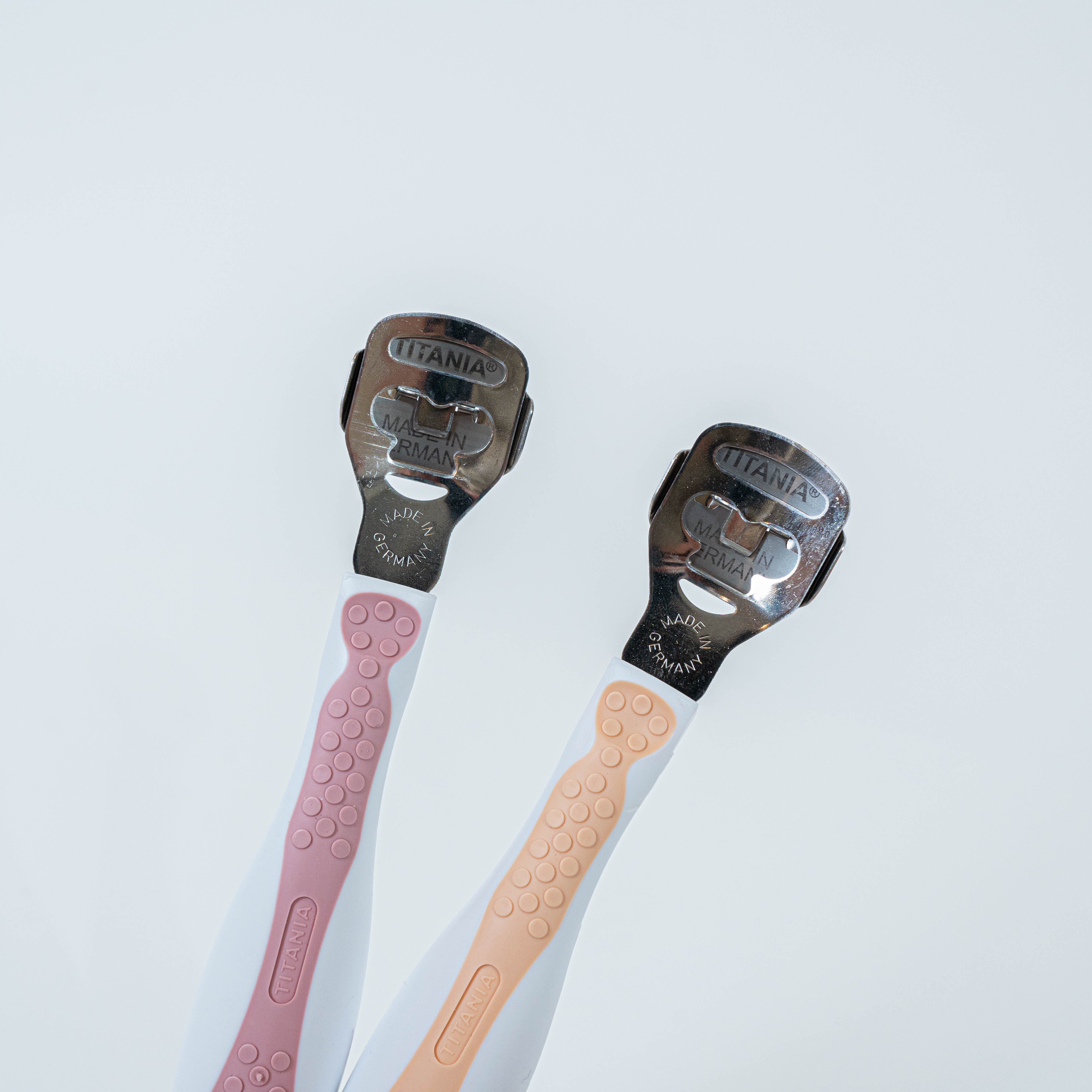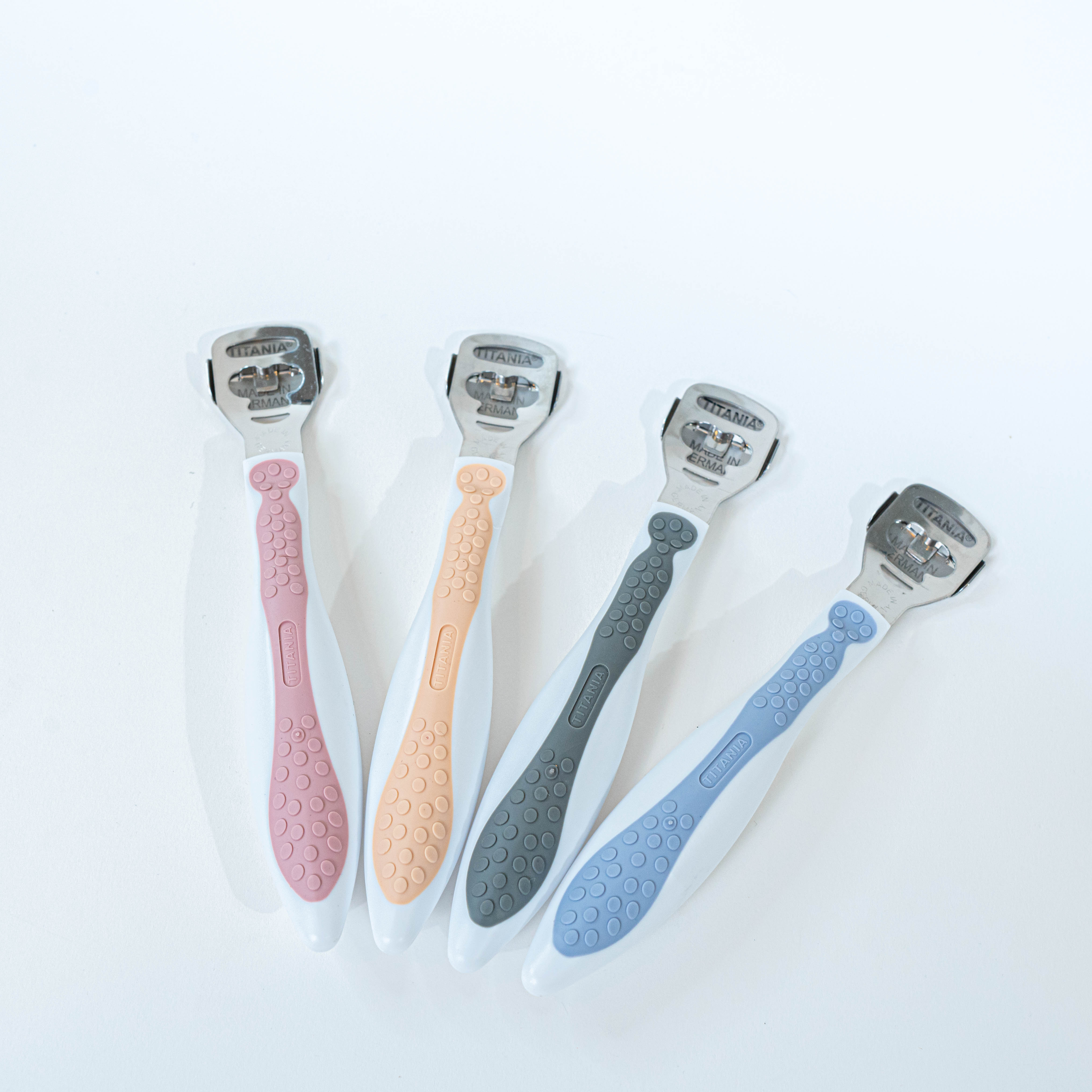 TITANIA SET ที่ขูดส้นเท้า มีดโกนส้นเท้า พร้อมใบมีดในตัว สำหรับส้นเท้าแตก ด้ามจับนุ่มมือ นำเข้าจากเยอรมันนี สี Apricot